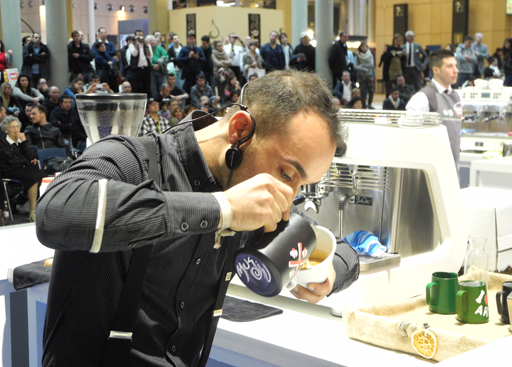 Tulipani e vortex (nella tazzina da espresso si sono succeduti ben dieci elementi) disegnati con grande precisione, sono stati i protagonisti della gara che ha confermato Chiara Bergonzi campionessa italiana di Latte Art; molto bella anche la sua prova di Art Bar: all’interno di un vortex a 19 elementi ha disegnato un canguro con un mix di polvere di caffè, un colorante alimentare marrone e latte, tratteggiato con un bastoncino di legno, per non disperdere il colore, e colorato all’interno con un pennino tradizionale. Giuseppe Musiu si è classificato secondo (bella e colorata la sua prova di Art Bar), terzo Matteo Beluffi.