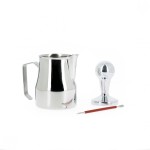 Kit Barista, Un set di attrezzature professionali ma adatte anche all’Home Barista, questo kit è composto da una lattiera Motta da 500ml in acciaio (ideale per 2 cappuccini), un pressino professionale e una pennina da latte art a doppia punta, per rifinire i propri capolavori con la tecnica “Etching”. Qui lo trovate a 40,90€