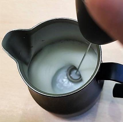 Ebbene sì per montare il latte a freddo abbiamo bisogno di una macchina per Frappè o di un economico frullino montalatte e di latte Totalmente Scremato molto, ma molto freddo che riesce ad inglobare aria a freddo molto meglio del latte intero.