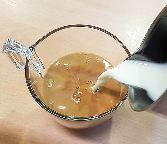 • Riempire la tazza per circa 2/3 con latte intero freddo (più cremoso e buono di quello totalmente scremato)