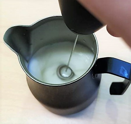 - Riempire la tazza per circa 2/3 con latte intero freddo (più cremoso e buono di quello totalmente scremato)