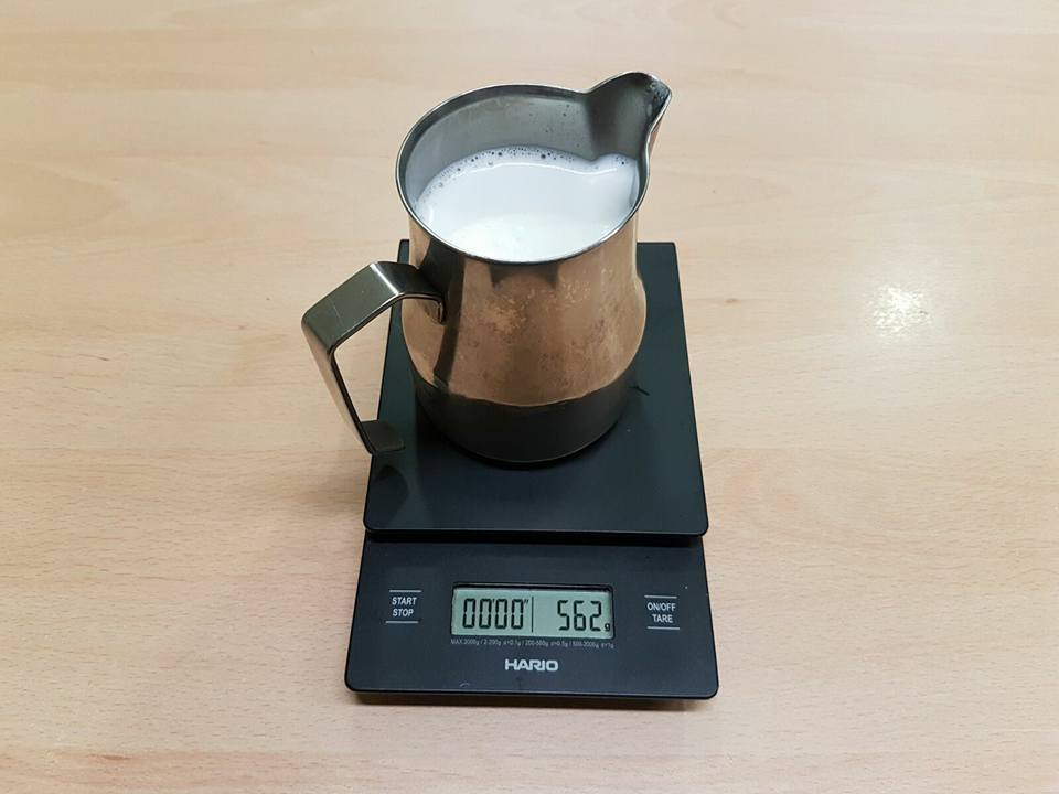Abbiamo ripetuto l’operazione e nelle due montature successive il tempo impiegato è aumentato di 10-13 secondi ed è aumentato anche la quantità di acqua inserita (18gr). Tempistiche e qualità di risultato perfette per l’uso casalingo di questa attrezzatura con una crema di latte elastica che ci ha permesso di decorare i cappuccini preparati con la Latte Art.