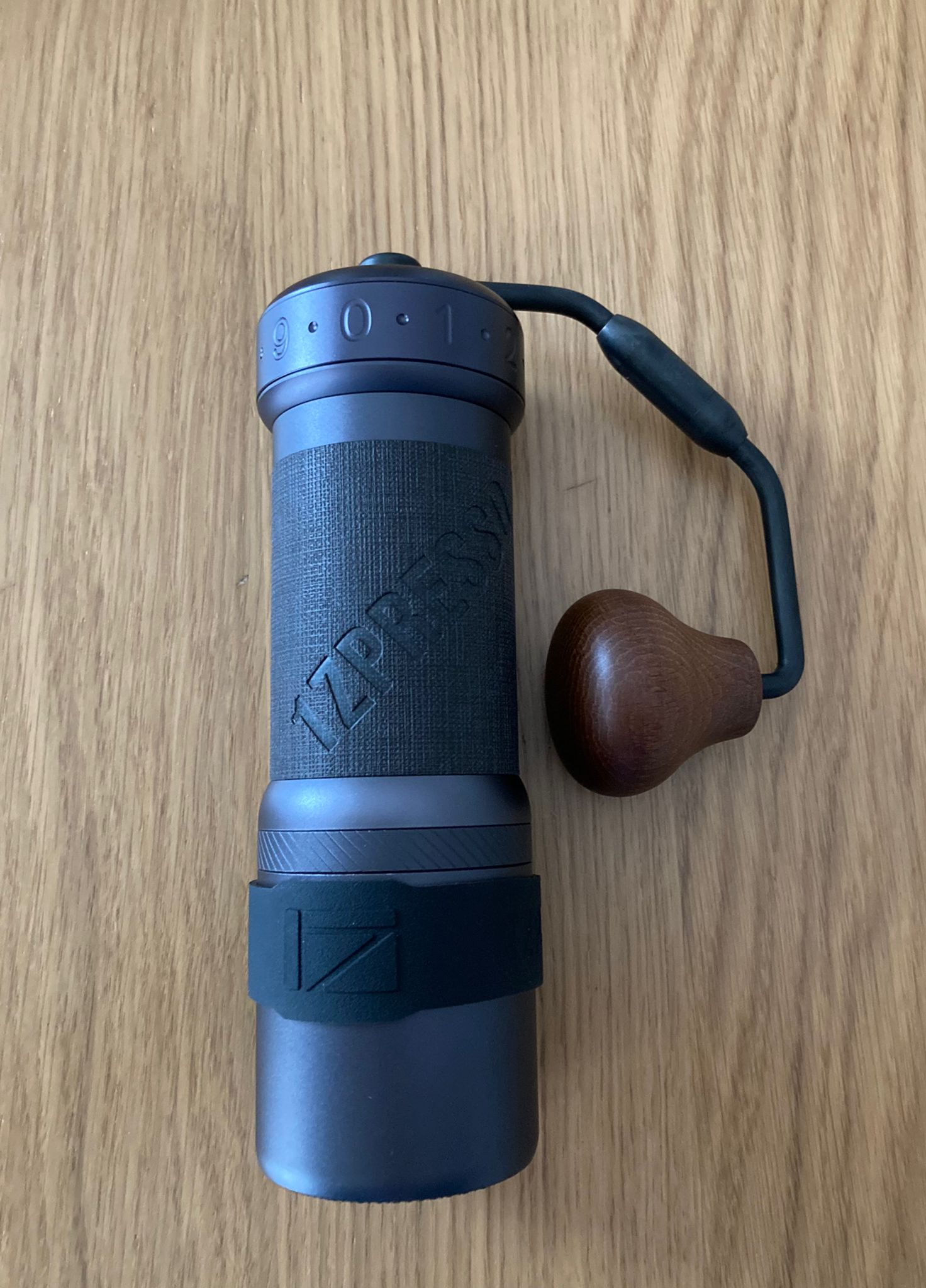 Il manico del macinino si presenta diverso rispetto alle altre versioni dell’azienda 1Zpresso. Svitando ed esercitando una piccola pressione sulla manopola si ha la possibilità di piegarla, in questo modo occuperemo meno spazio.