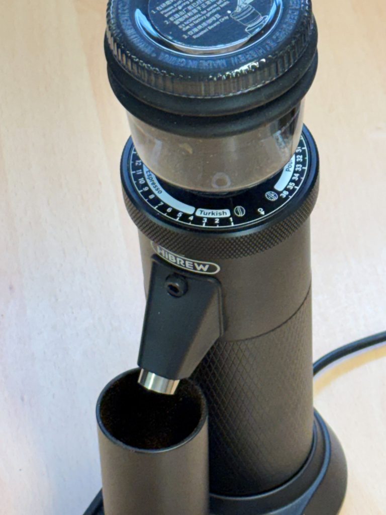 Il design del HiBrew G5 è moderno, pulito e con un ingombro minimo. Il corpo in alluminio, la ghiera in plastica e il bicchierino di raccolta magnetico rendono l’esperienza d’uso semplice e ordinata. Le dimensioni compatte (circa 33 × 24 × 16 cm) e il peso di 2,5–2,6 kg lo rendono ideale per cucine piccole o postazioni home barista. L’unico limite evidente è proprio il peso: durante la macinatura il macinacaffè può muoversi, soprattutto su macinature fini.